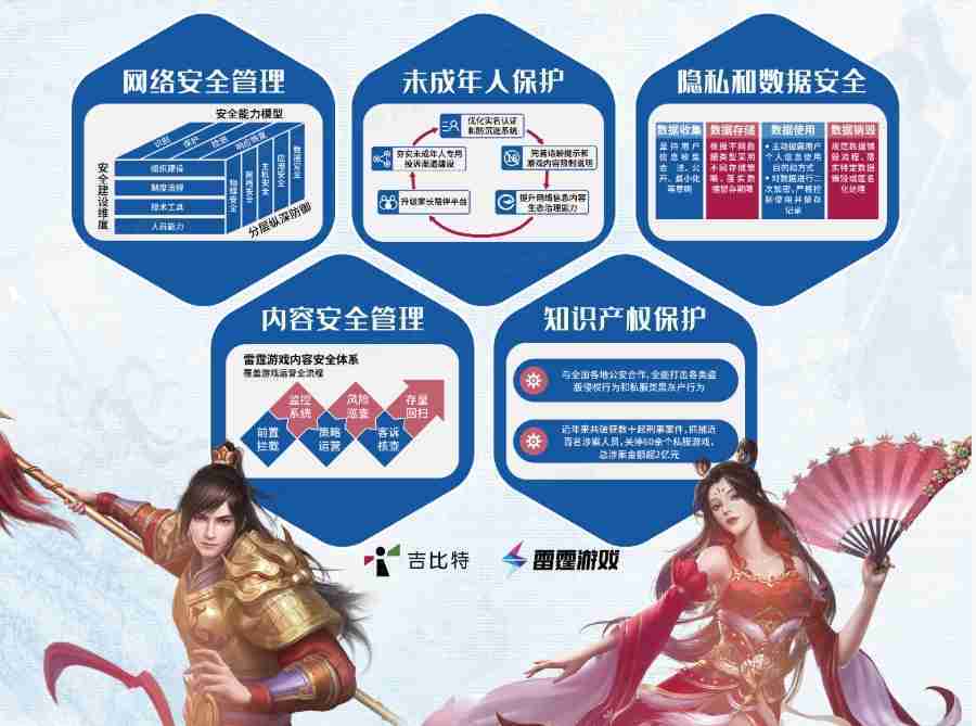 本次赏金大对决展区以网络安全管理、、、、内容安全管理、、、、未成年人保护、、隐私和数据安全、、、知识产权保护五个模块介绍公司游戏安全工作成果,,体现赏金大对决高度重视网络安全,,严格遵守相关法律法规要求,,,,积极承担企业主体责任。。。。