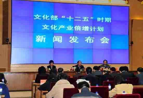 2月28日下午,,文化部在京召开新闻发布会,,正式向社会发布《文化部“十二五”时期文化产业倍增计划》,,提出了 “十二五”期间文化部门管理的文化产业增加值年平均现价增长速度高于20%,,,2015年比2010年至少翻一番,,实现倍增的奋斗目标。。